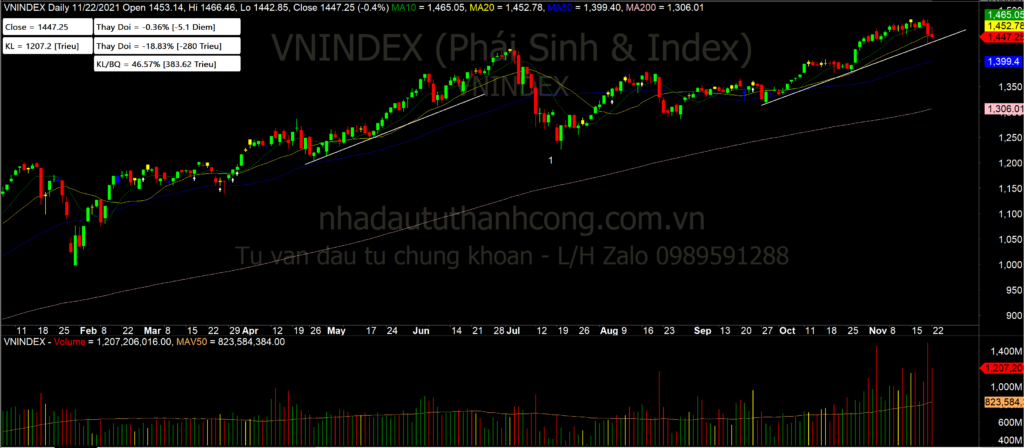 Thị trường 23/11/2021 – tiếp tục bán tháo trên Midcap và Smallcap bất kể VN30 tăng mạnh nhờ nhóm ngân hàng